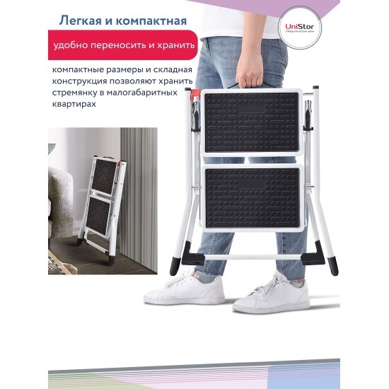Стремянка Unistor APEX с двумя ступенями, складная, 4.5х48.5х44.5 см интересное: