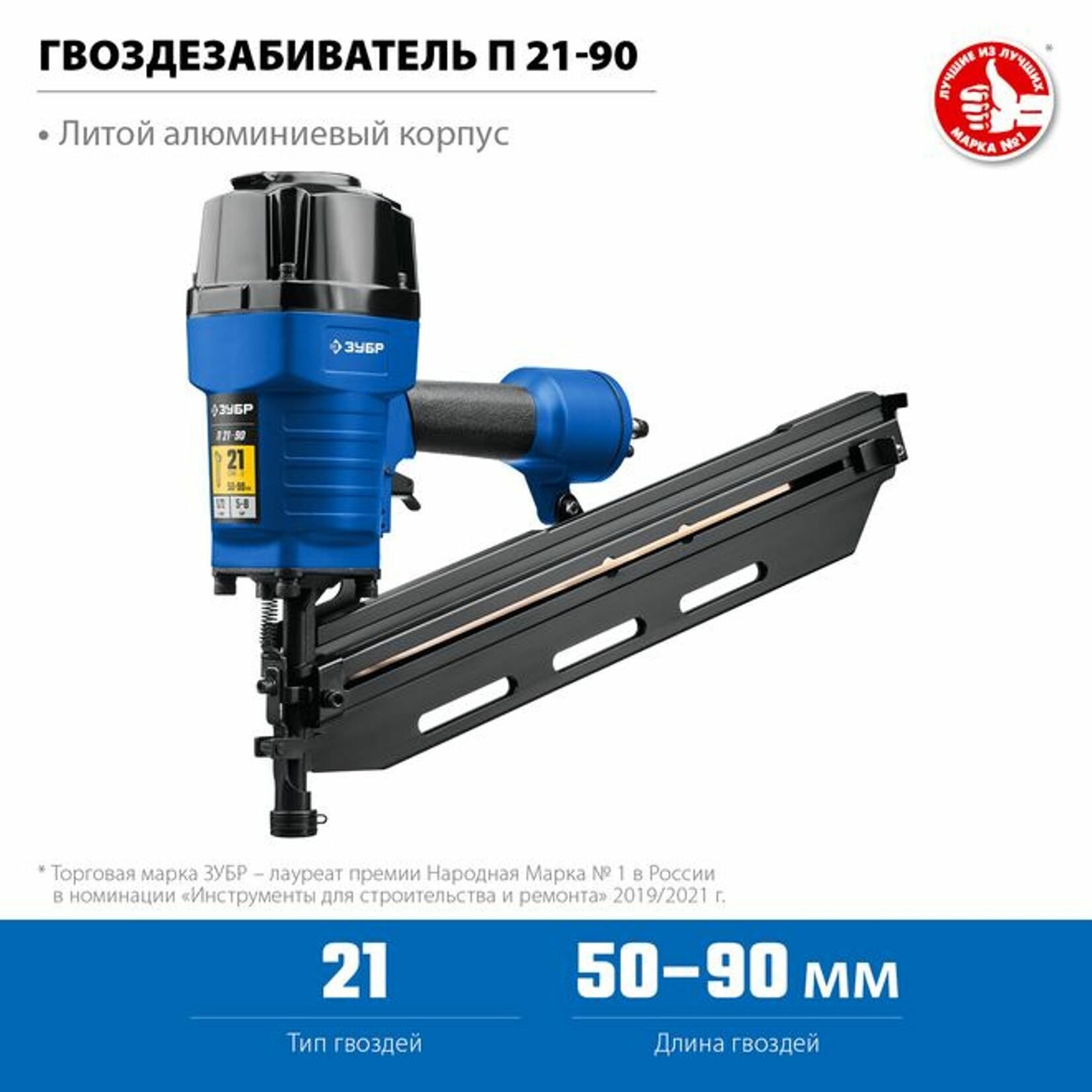 Пневматический нейлер (гвоздезабиватель) ЗУБР П21-90, гвозди тип 21 (50-90мм), Профессионал