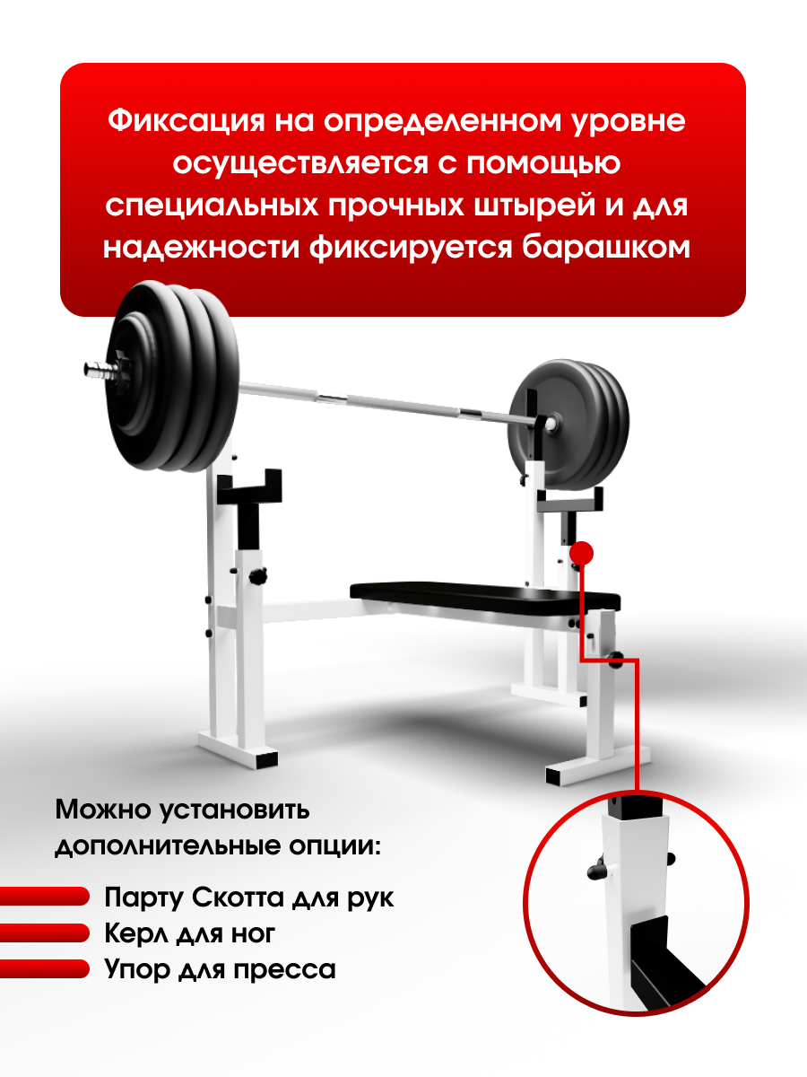 Скамья со стойками неотделимая "Атлант" Sportlim Белая интересное: