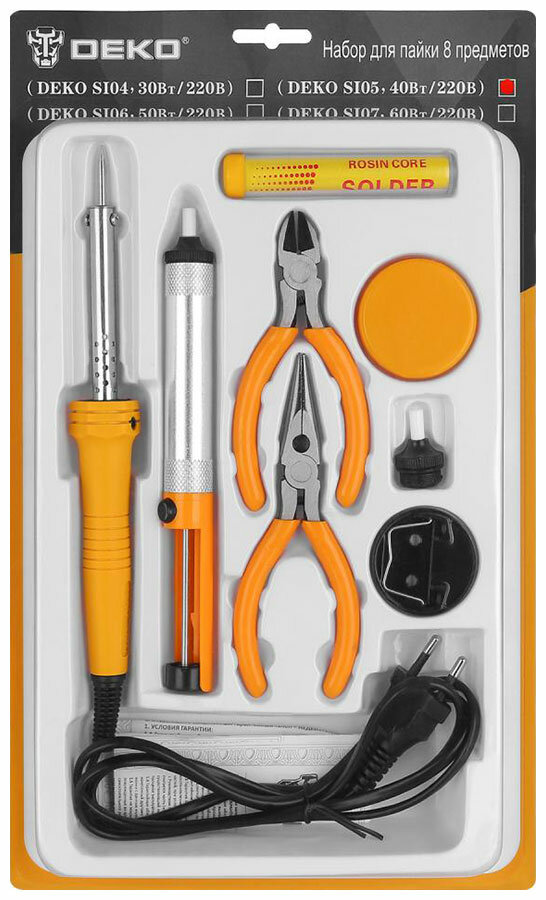 Набор для пайки Deko SI05 40Вт/220 В 8 предметов желто-серый интересное: