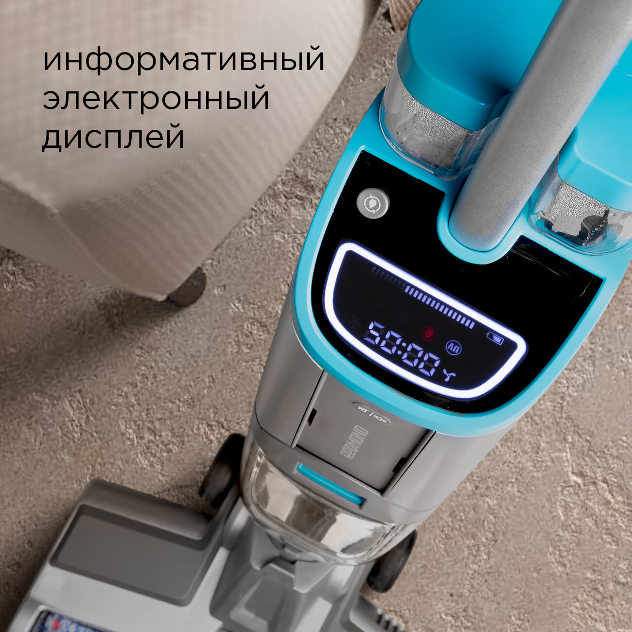 Беспроводной вертикальный пылесос REDMOND VH1312 MultiClean, сухая и влажная уборка, с УФ-лампой