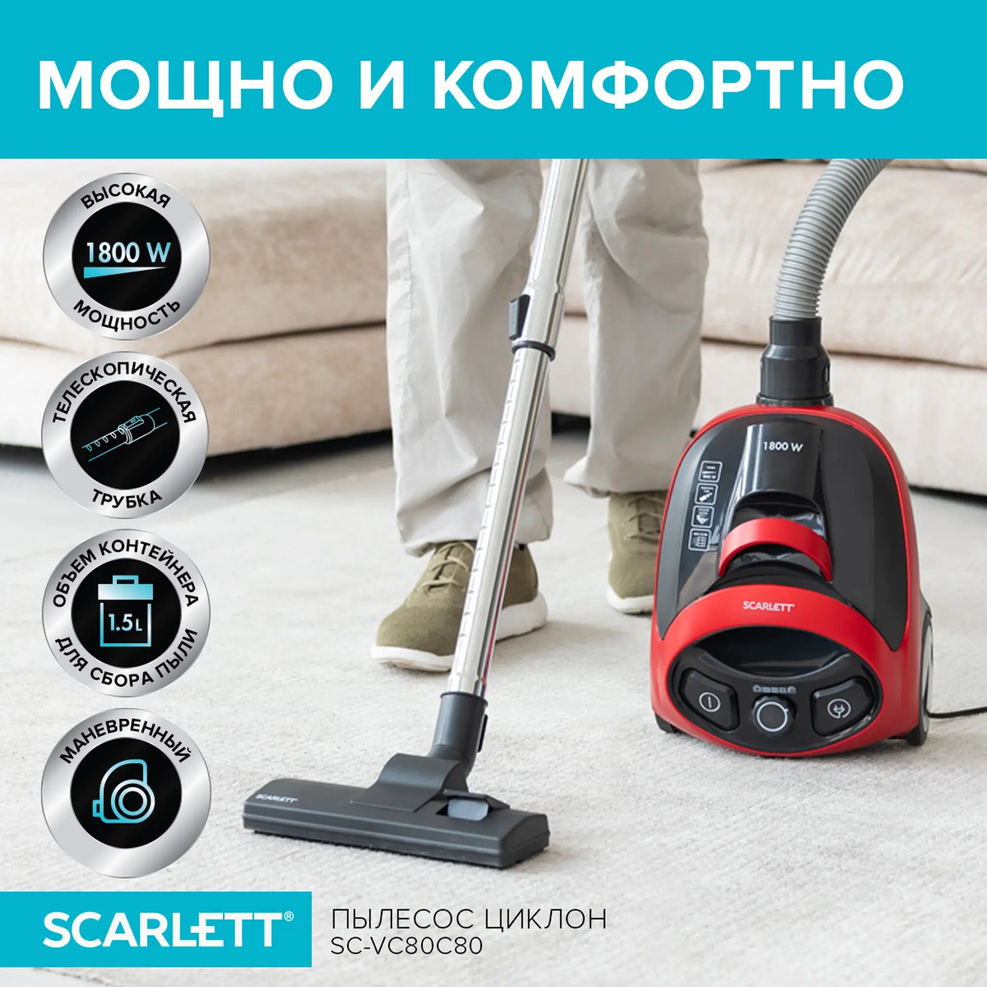 Пылесос SCARLETT SC-VC80C80 красный интересное: