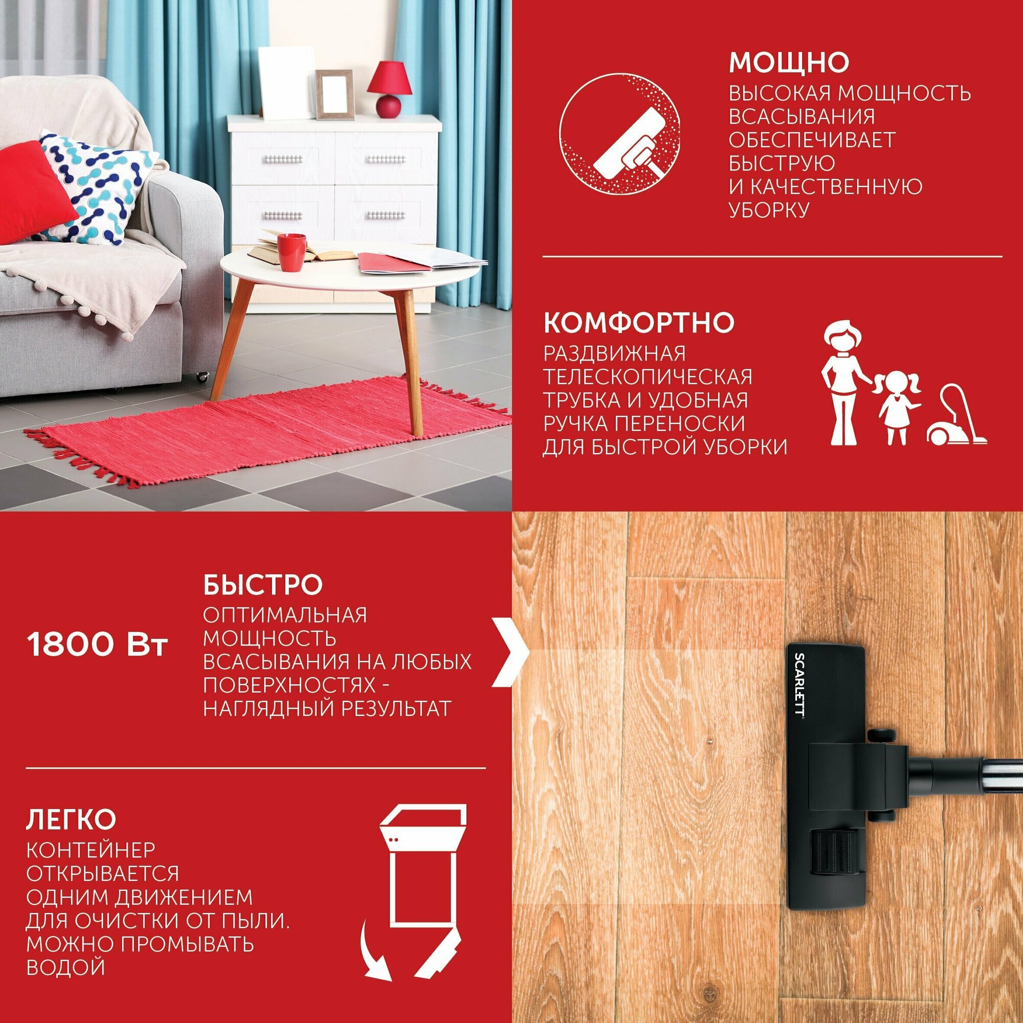 Пылесос Scarlett SC-VC80C80, 1800Вт, красный/черный