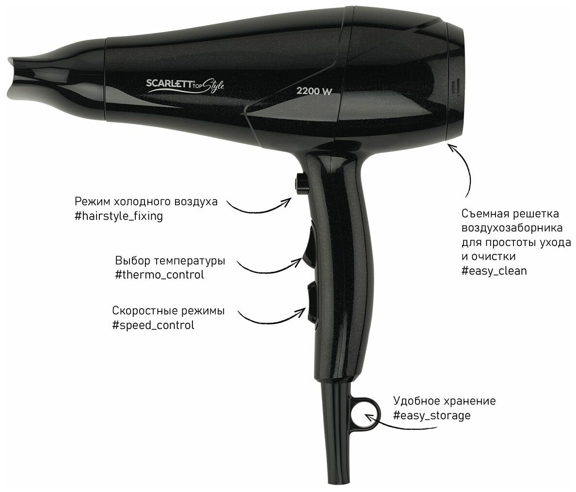 Фен Scarlett 2200Вт черный