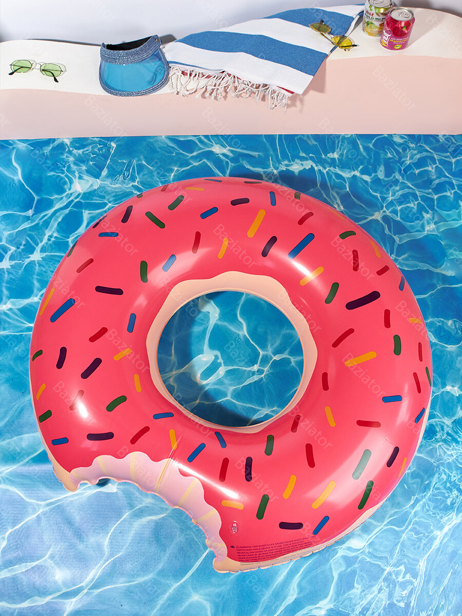 СохранитьНадувной круг Пончик розовый диаметр 120 см для безопасного активного отдыха на воде на пляже и в бассейне, круг для плавания для детей и взрослых интересное: