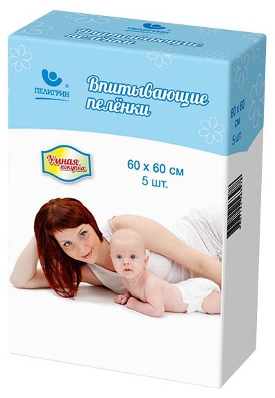 Пеленки впитываюшие 60х60 см classic, 5 шт. серия "Умная покупка" интересное: