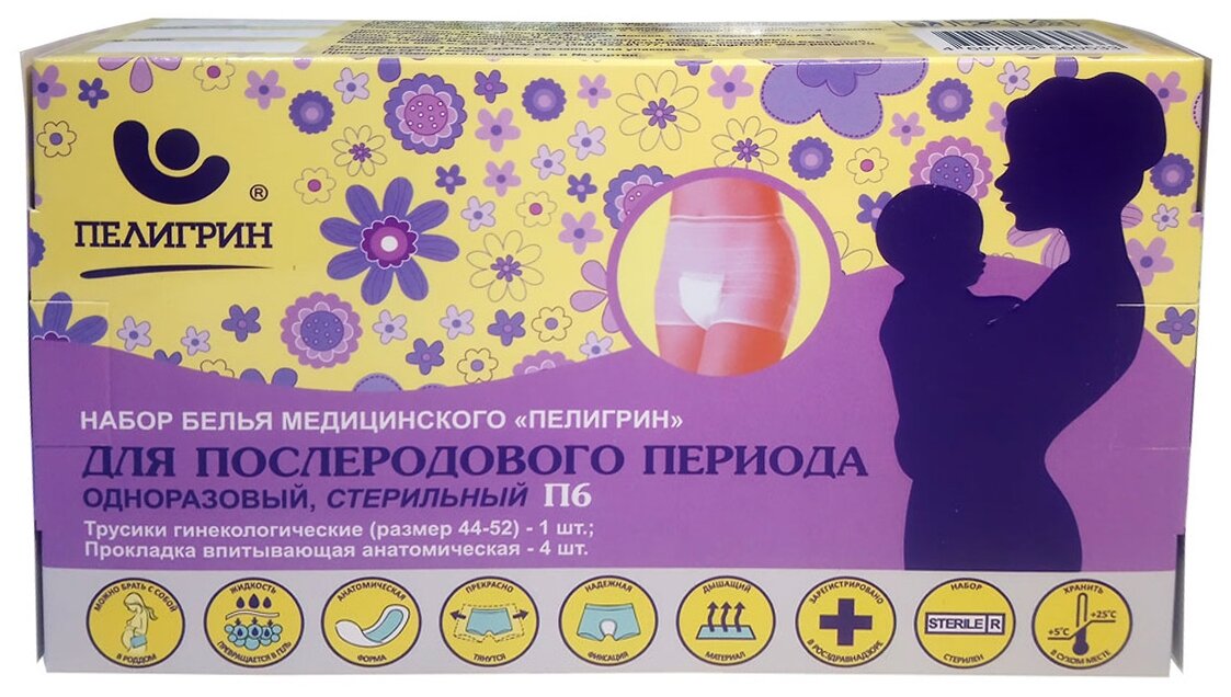 Комплект пелигрин П6 послерод. однораз. стер. (прокл. 4шт + трусики гинеколог.)