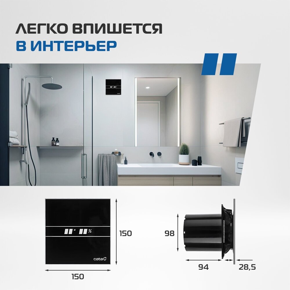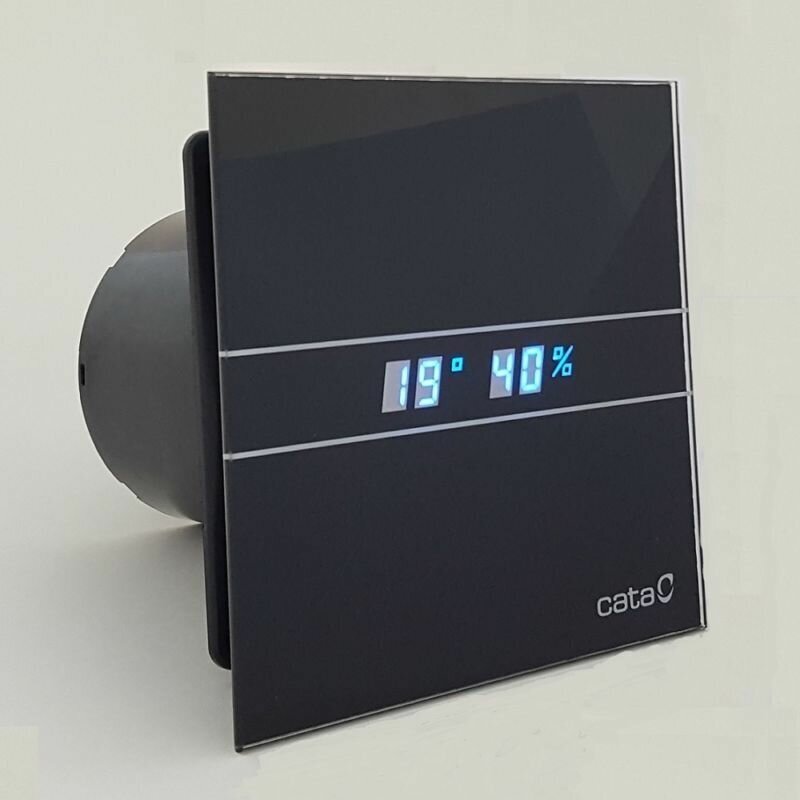 Накладной вентилятор Cata E 100 GTH Bk Black черный (Таймер, датчик влажности, термометр, дисплей)