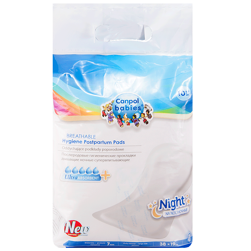 Ночные дышащие послеродовые прокладки Canpol Baby 5+ капель, 10шт в упаковке