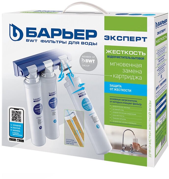 БАРЬЕР эксперт Жесткость, фильтр под мойку для очистки воды, защита от накипи, трехступенчатый, быстросъемный, с краном