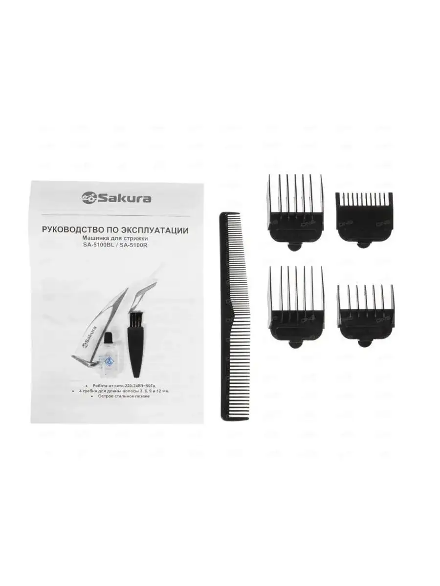 Машинка для стрижки волос Sakura SA-5100BL, 4 насадки