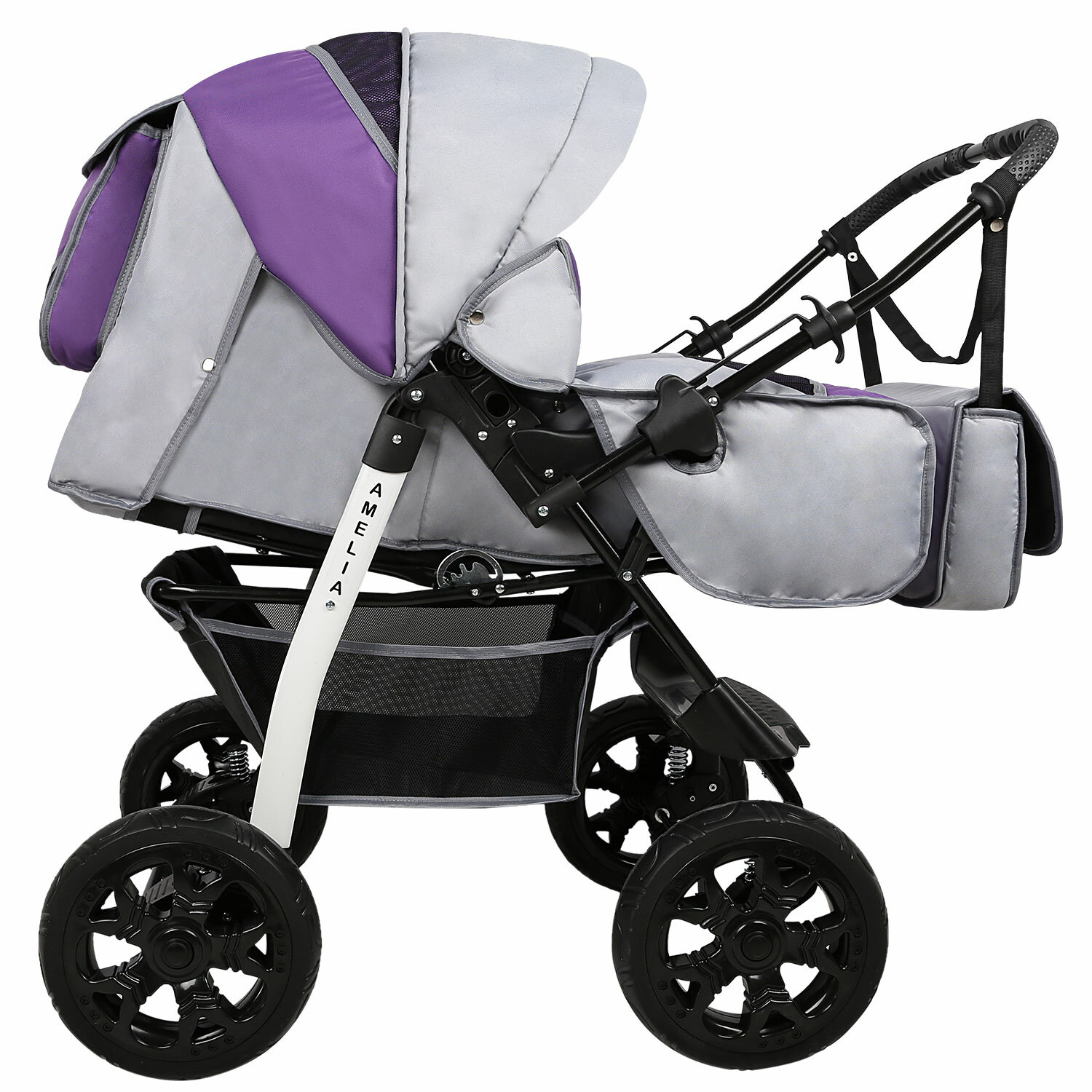 Коляска-трансформер Alis Amelia универсальная всесезонная с люлькой-переноской (04), серый, фиолетовый