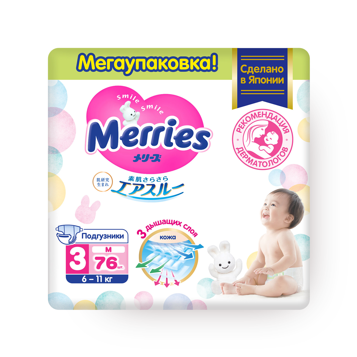 Купить Подгузники MERRIES M (6-11 кг.), 76 шт.