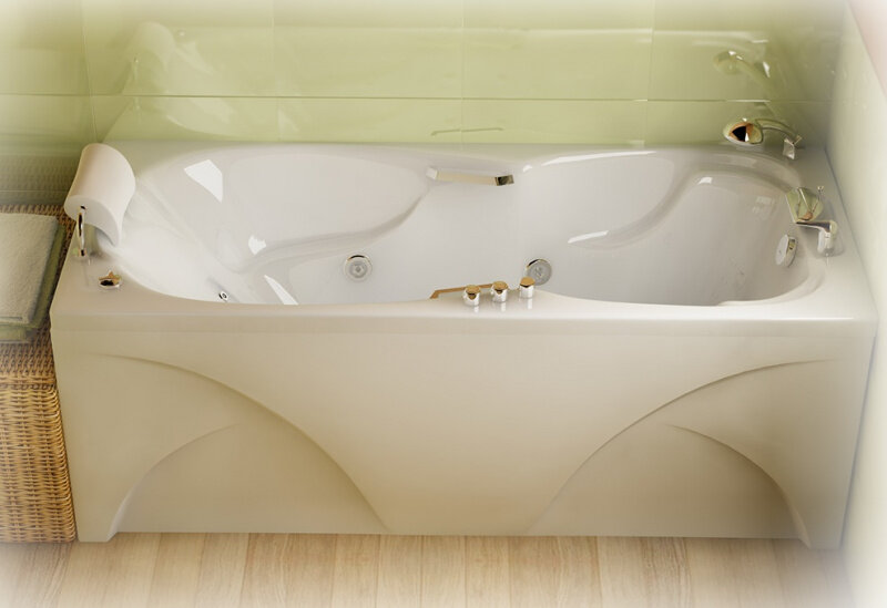 | Плюсы: | Рифленое дно, анатомическая спинка, широкий бортик под краны или шампуни. Экран можно докупить не только лицевой, но и для торцевой части. Последнее было актуально, ванная комната просторная, даже такая шикарная модель с размерами 180х80 расположена в углу. |