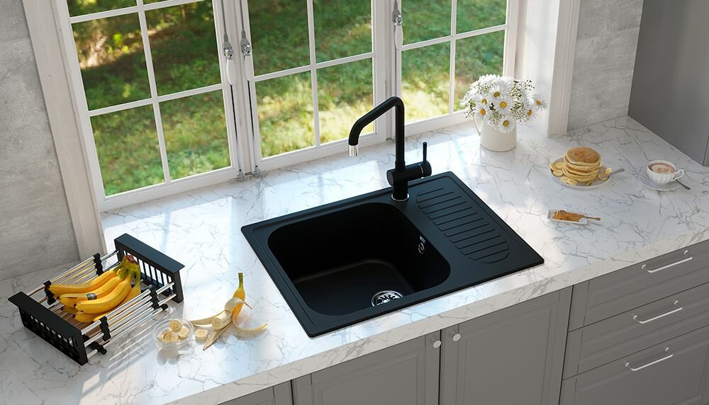 Мойка для кухни из искусственного камня Ulgran U-202-344, ультра-черный