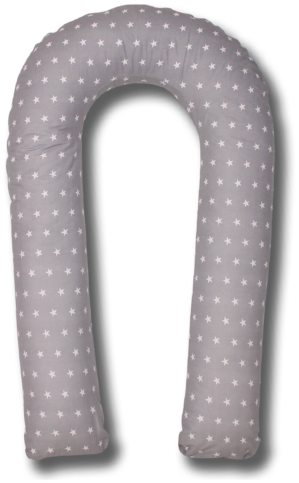 Подушка для беременных Body Pillow формы U с серой наволочкой в белых звездах, с наполнителем "Холлофайбер", 150х90см, U_holo_star_gw