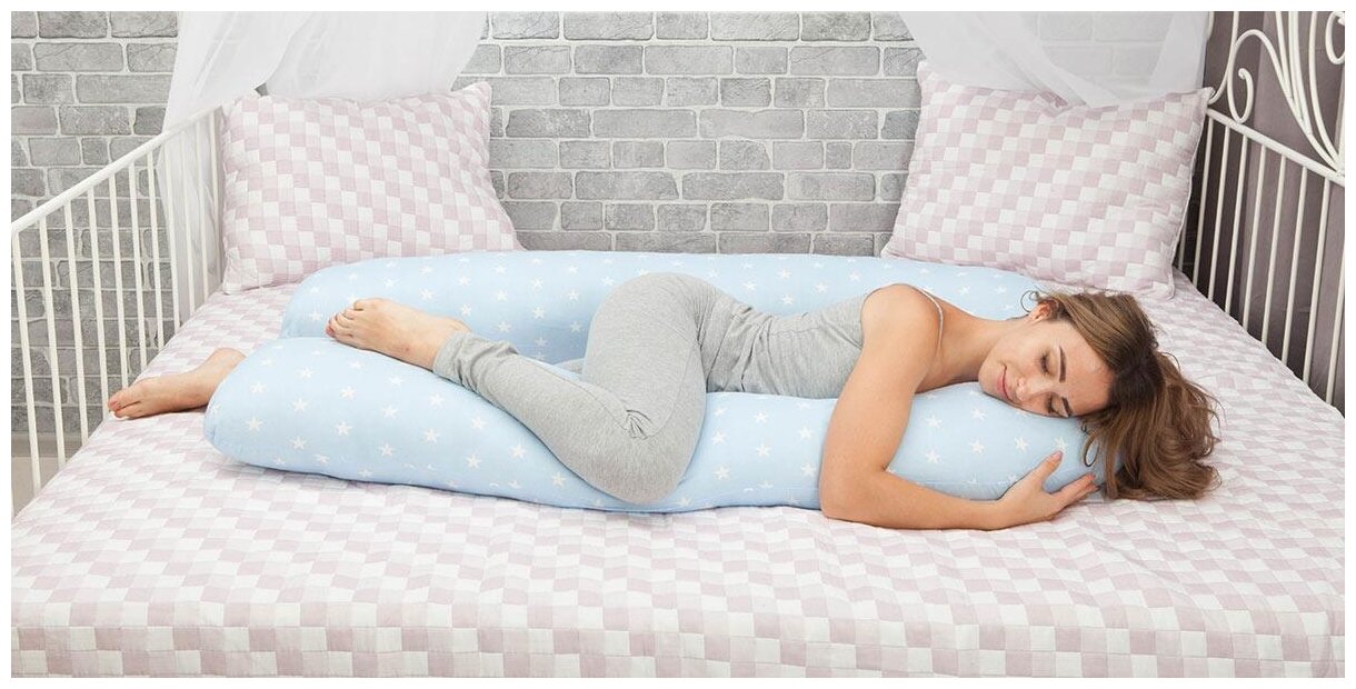 СохранитьПодушка для беременных Body Pillow формы U с голубой наволочкой в белых звездах, с наполнителем "Холлофайбер", 150х90см, U_holo_star_lbw интересное: