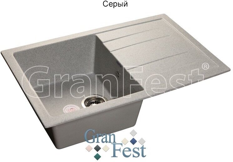 Мойка мрамор QUADRO GF-Q--780L чаша с крылом 780*500 мм серый, GRANFEST