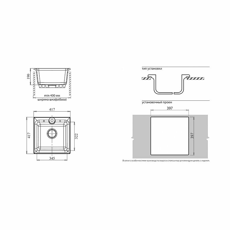 GRANFEST Мойка PRACTIК 420 1-чаша 417*417мм топаз арт.GF-