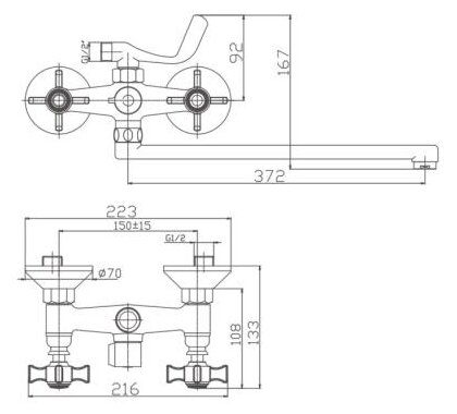 Смеситель для ванны и умывальника 1/2 кер HB2225 HAIBA картридж перекл L-нос крест