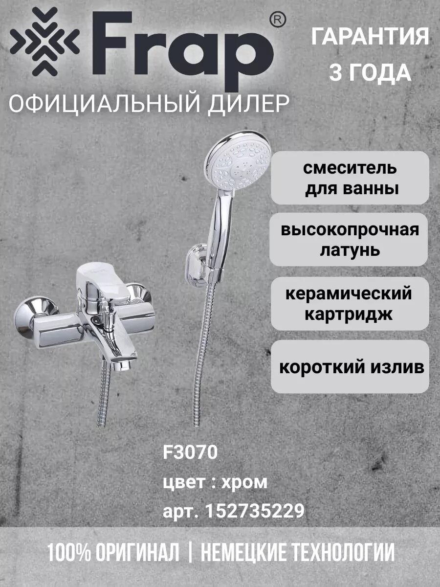 Смеситель для ванны с подключением душа Frap H70 F3070 хром интересное: