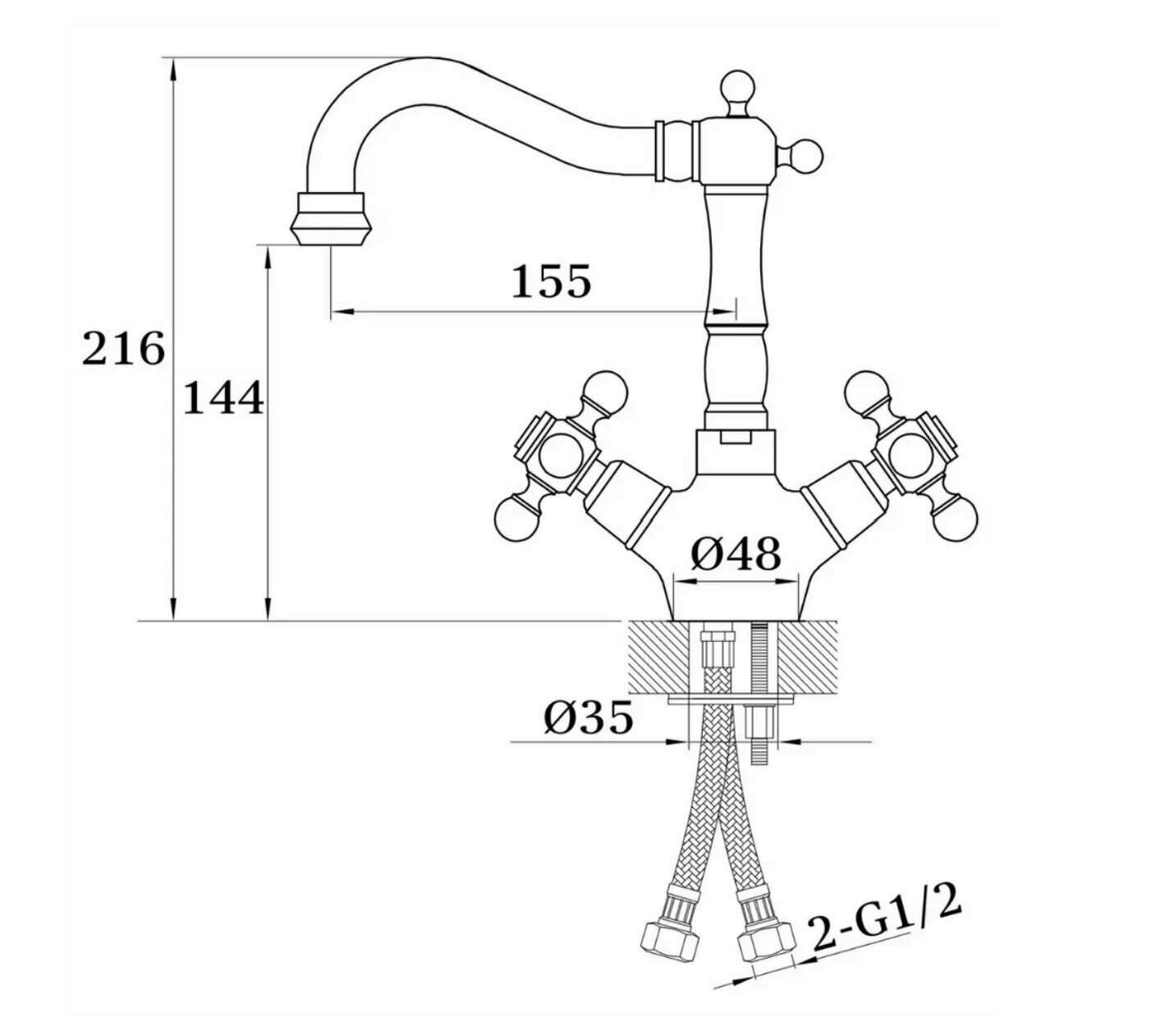 Купить 09012 Смеситель двухвинтельный для умывальника GANZER