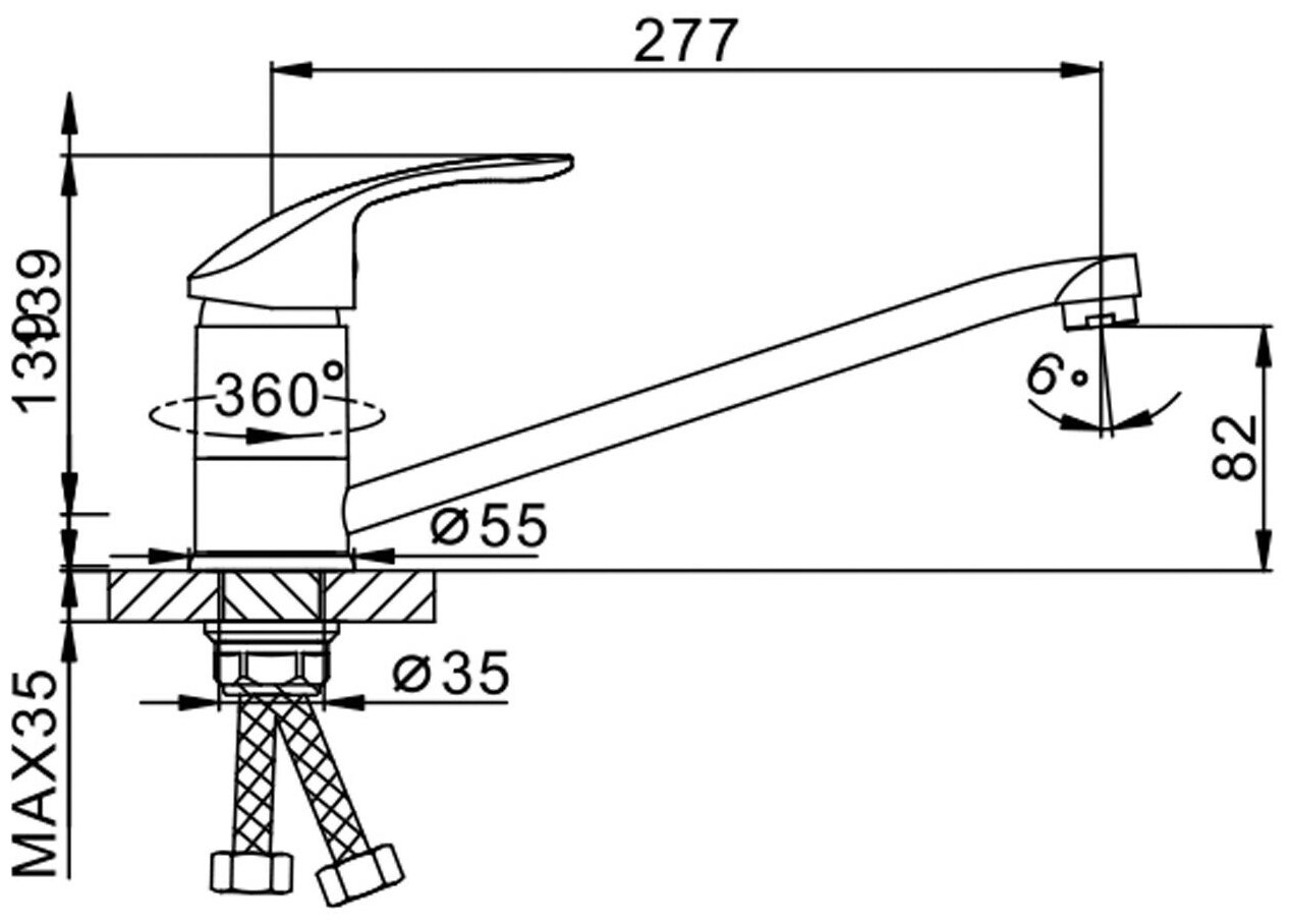 | Минусы: | Гибкая подводка - бюджетненькая, сильно изгибается. |