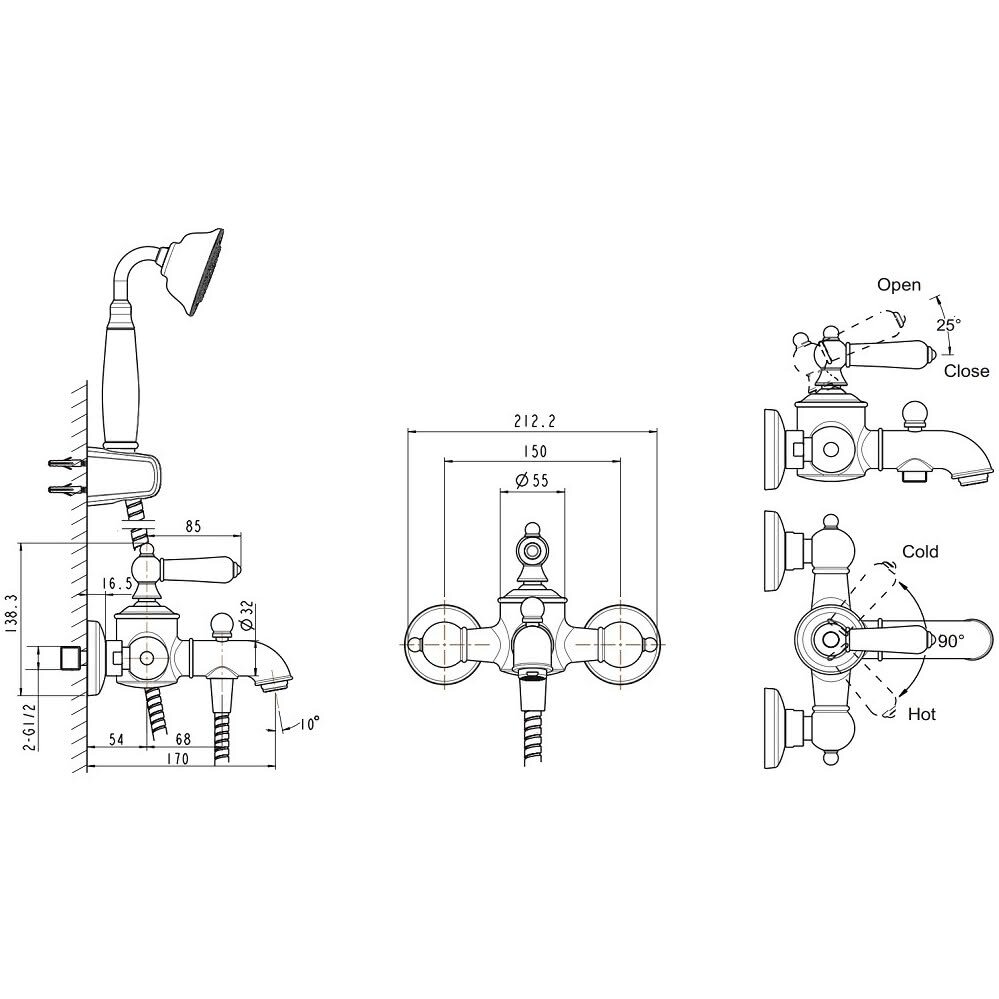 Смеситель для ванны Bravat Art с лейкой (F675109C-B)