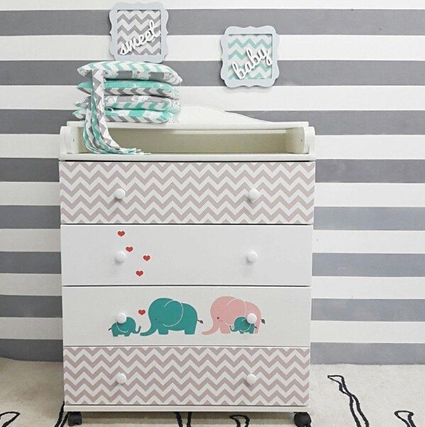 Пеленальный комод By Twinz Мэри - бирюза, розовый