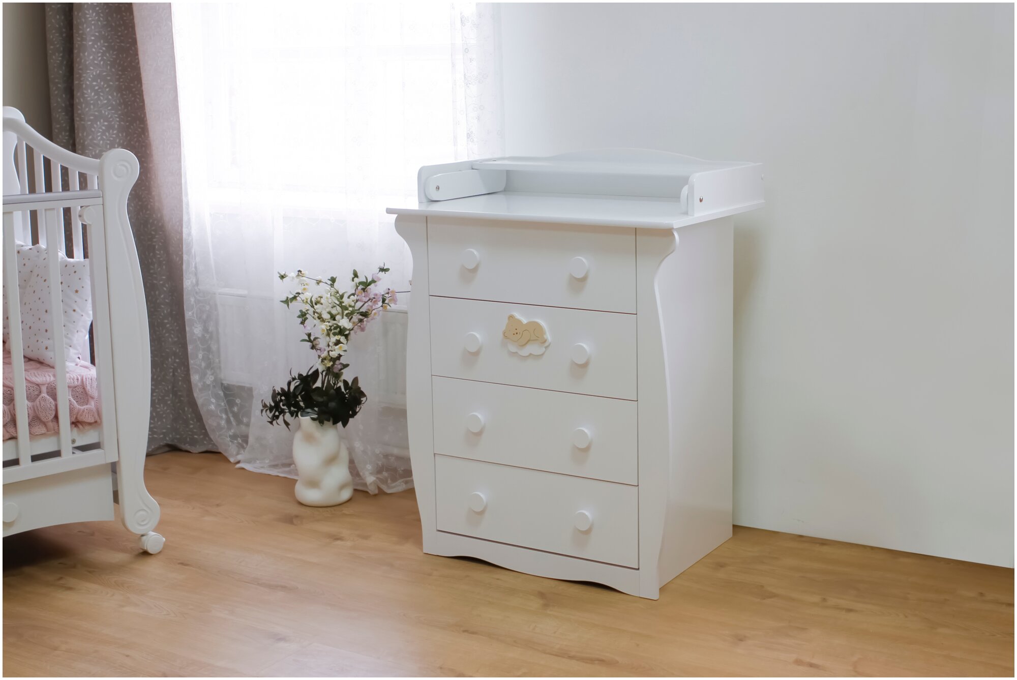 пеленальный Мишка на облаке С-257 дерево (4 ящика) Белый (с настилом)