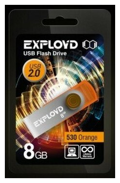 Купить Флешка Exployd 530, 8 Гб, USB2.0, чт до 15 Мб/с, зап до 8 Мб/с, оранжевая