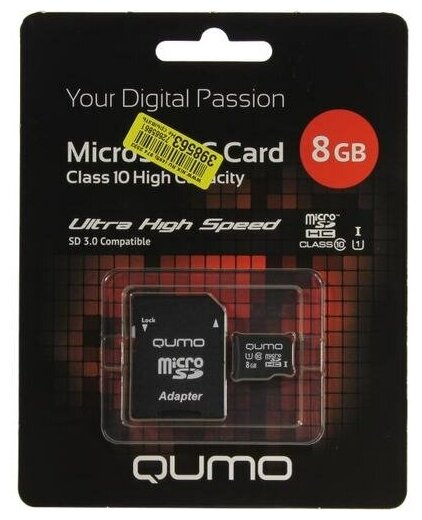 Micro SecureDigital 8Gb QUMO QM8GMICSDHC10U1 {MicroSDHC Class 10, SD adapter, UHS-I}