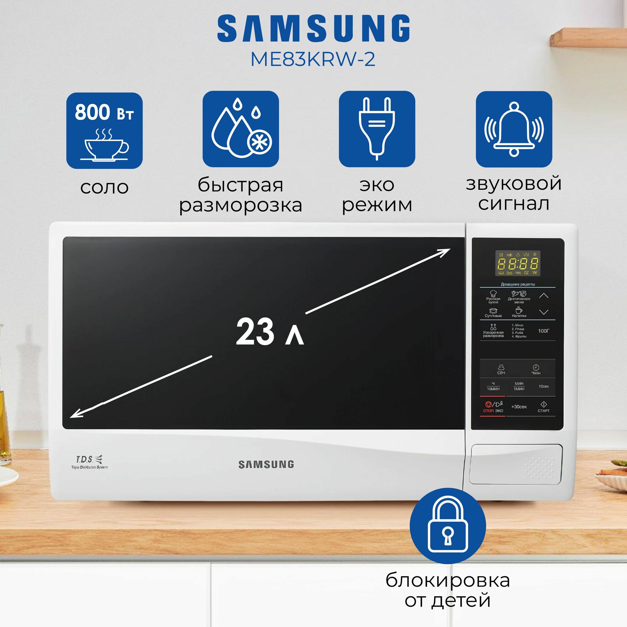 Купить Samsung ME83KRW-2/BW Микроволновая печь, 23л, 800 Вт, белый/черный