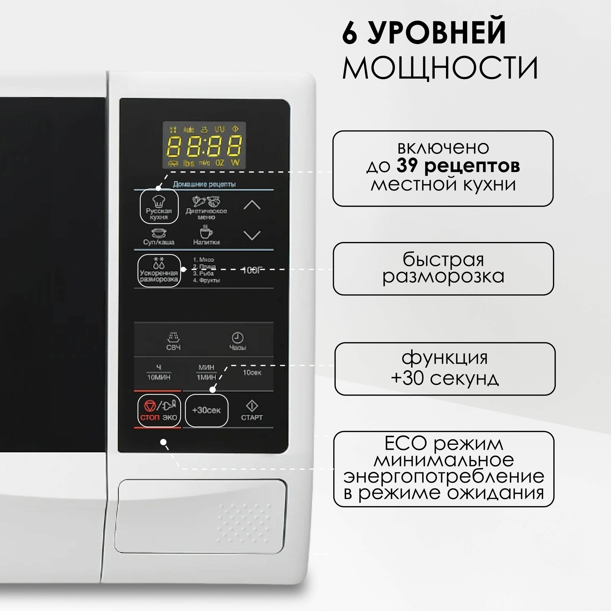 Микроволновая печь FS MWO D 20.10 WH, Сенсорное управление, 6 программ для приготовления, антипригарная эмаль, таймер, блокировка от детей.