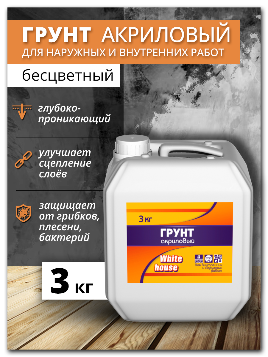 Грунтовка White House акриловая для внутренних и наружных работ 3кг
