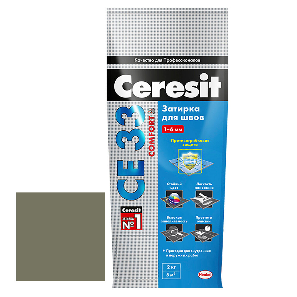 Купить затирка для швов CERESIT СЕ 33 Super 1-6мм 2кг оливковая, арт.2092530