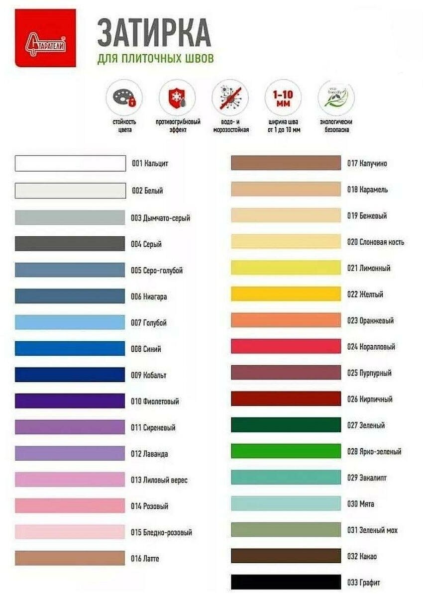 | Плюсы: | цена-качество! отличная затирка, большой выбор оттенков |