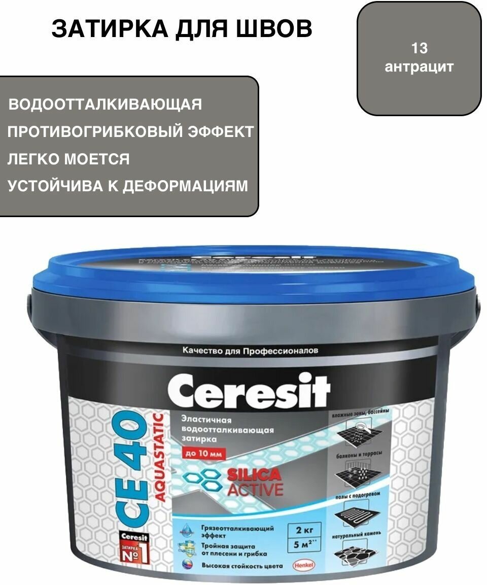 Купить Затирка для плитки Ceresit СЕ 40 Aquastatic (2кг) антрацит 13