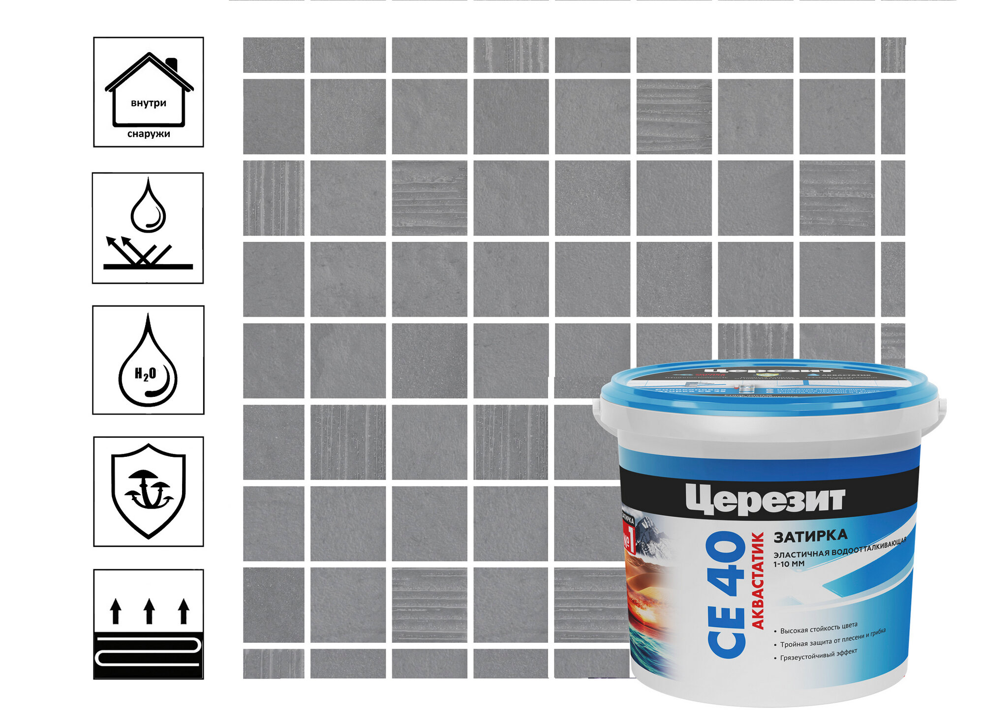 Затирка цементная для швов Церезит CE 40 Aquastatic эластичная водоотводящая 2 кг, светло-серый