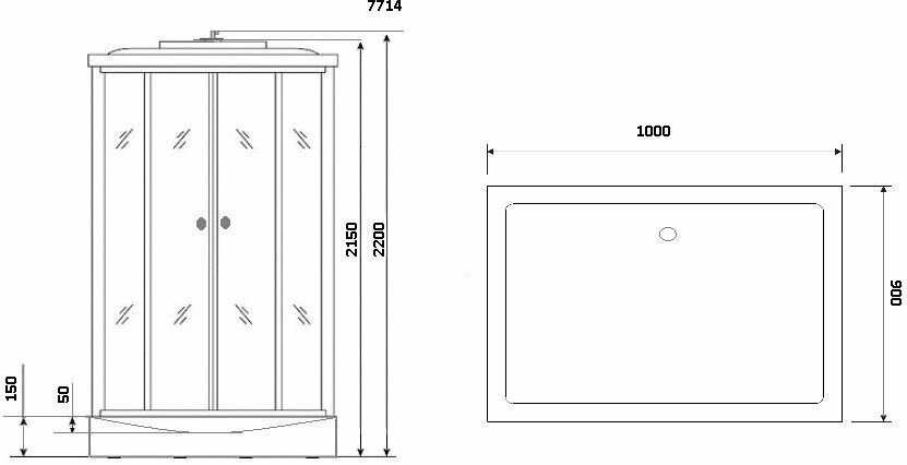Душевая кабина NG-7714W (1000x900х2150) низкий поддон стенки белые