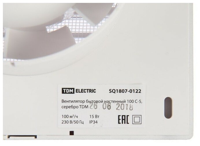 Вентилятор вытяжной настенный, TDM Electric, установочный диаметр 100 мм, 15 Вт, 100 м3/час, SQ1807-0001