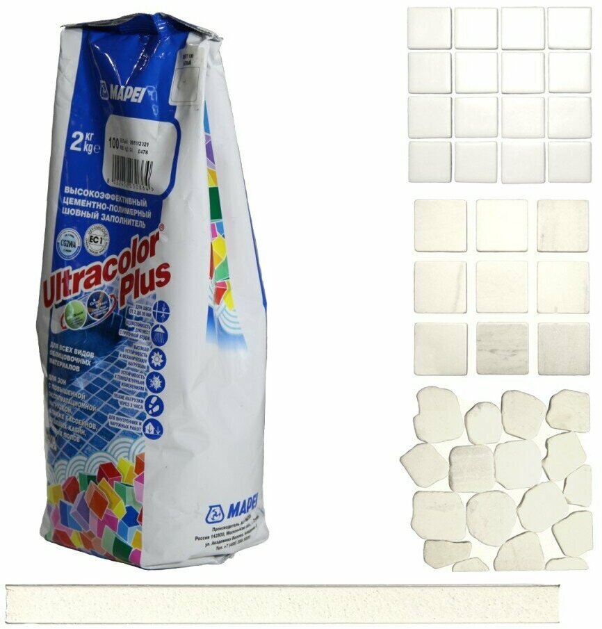 Купить Затирка для плитки на цементной основе Mapei Ultracolor Plus (2кг) 100 Белый