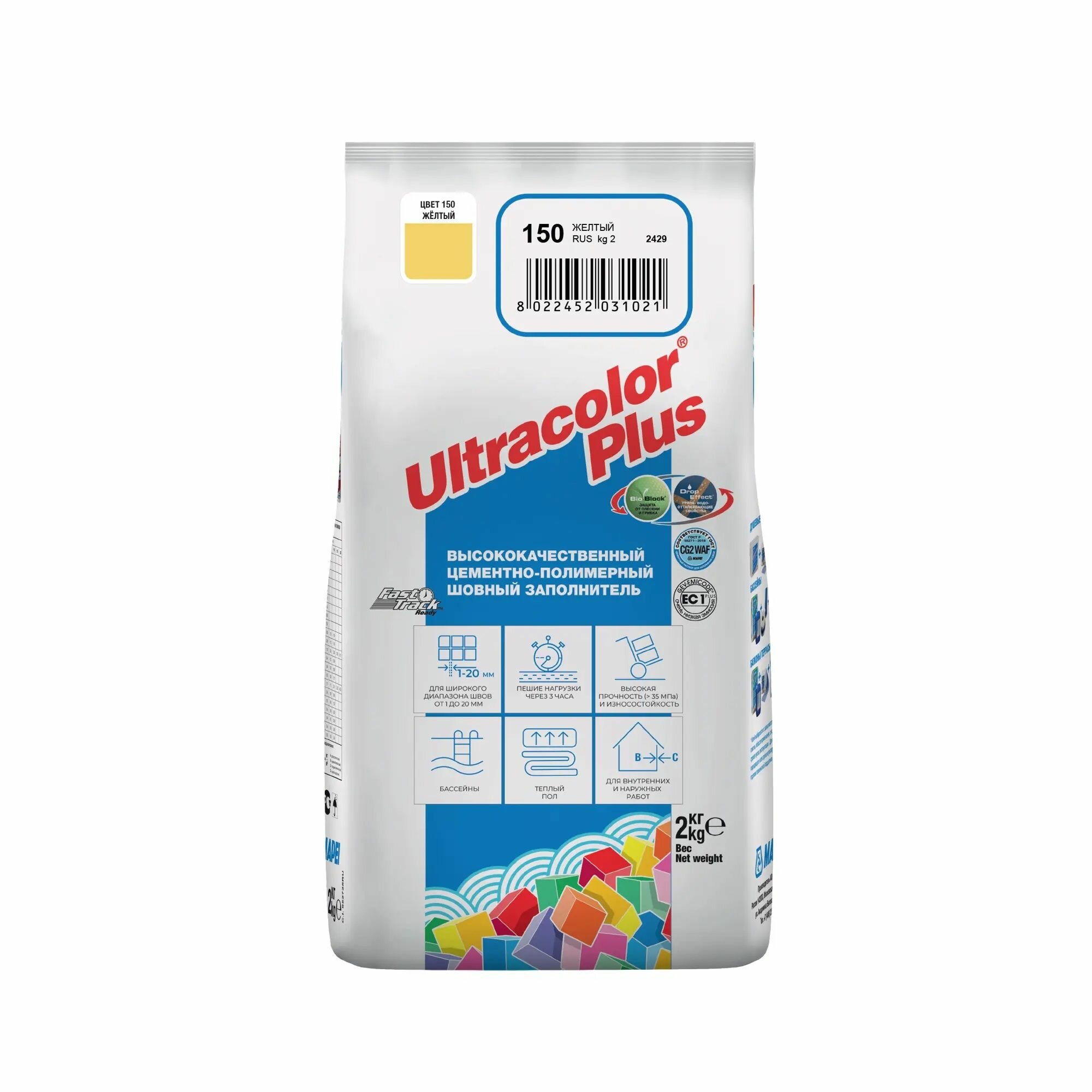 Купить Mapei Ultracolor Plus Цементная затирка для швов 2-20 (№150 желтый, 2 кг)