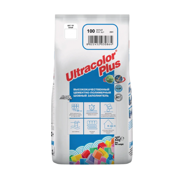 Затирка для плитки Mapei Ultracolor Plus №100 белая 2 кг