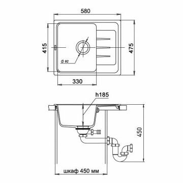 Мойка кухонная EWIGSTEIN Elegant 45F 1-чаша + крыло 580*480мм антрацит