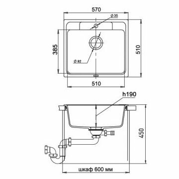 Мойка EWIGSTEIN Elegant 60 570*510 1 чаша (антрацит)