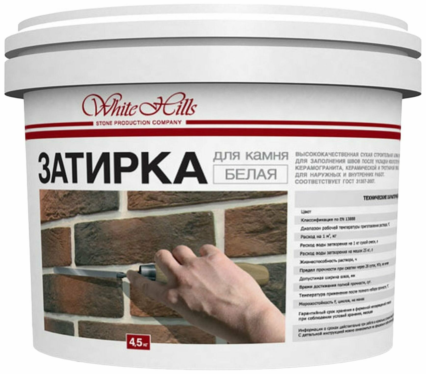 Затирка для камня и плитки цементная white hills белая крупнозернистая (ведро 4,5 кг)