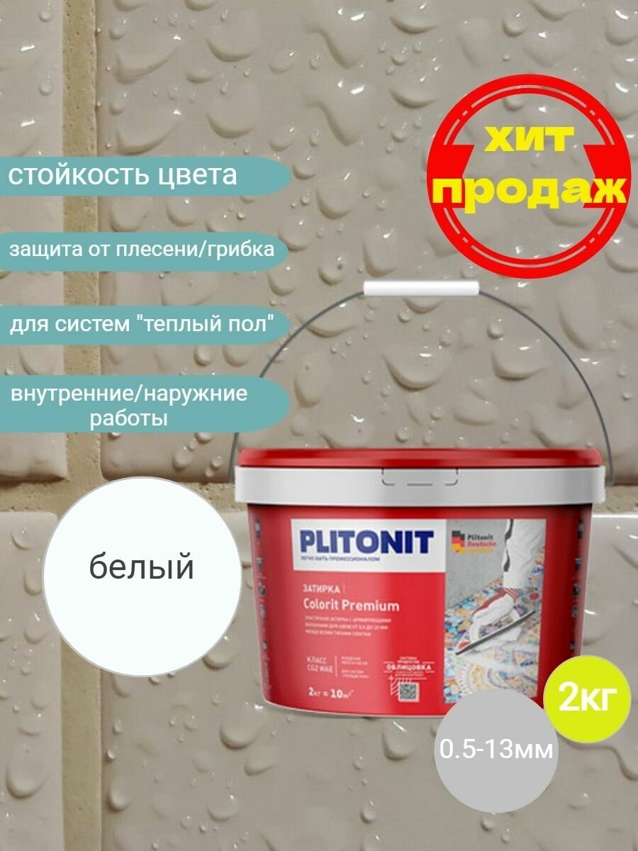 затирка для швов PLITONIT Colorit Premium 0,5-13мм 2кг белая, арт.5017