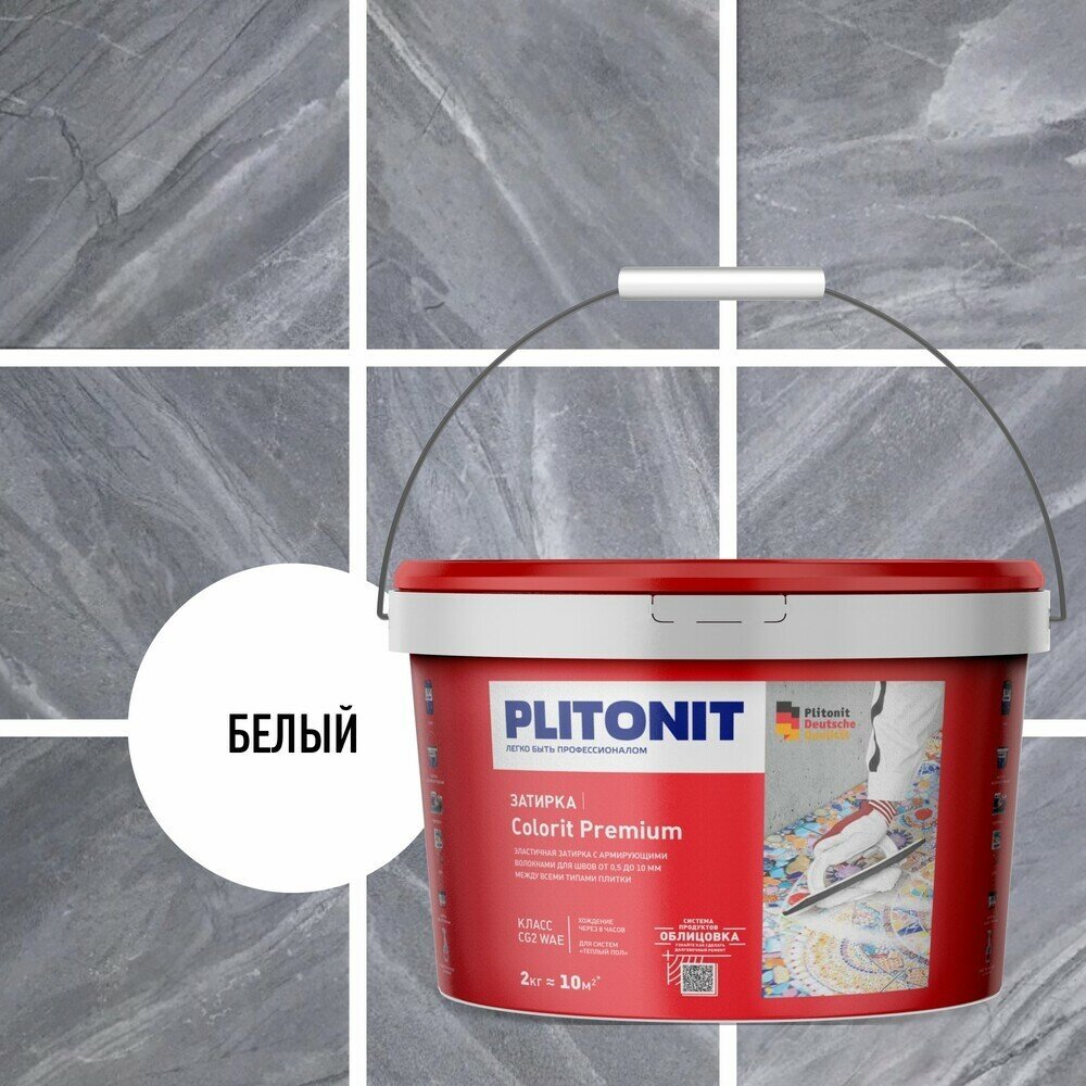 Затирка для плитки PLITONIT Colorit Premium биоцидная белая 0.5-13 мм 2 кг