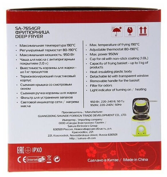 Фритюрница Sakura SA-7654 1л 950Вт. зеленый/белый
